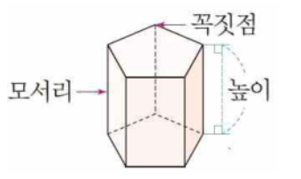 - 면: 밑면 2 + 옆면 n = n+2개,